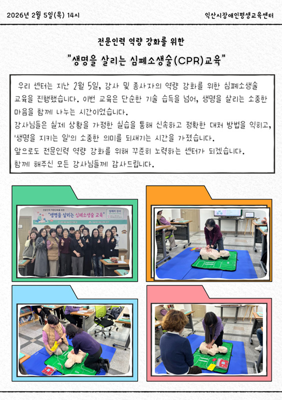 익산시장애인평생교육센터에서는 강사 및 종사자의 전문성 향상 교육을 진행하였습니다.